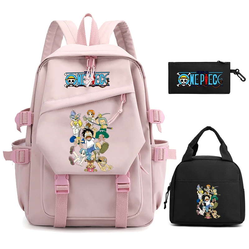 Stay organized and stylish with this One Piece 3-piece backpack set, perfect for boys, girls, teenagers, and even women on the go! Ideal for school, travel, and everyday use.