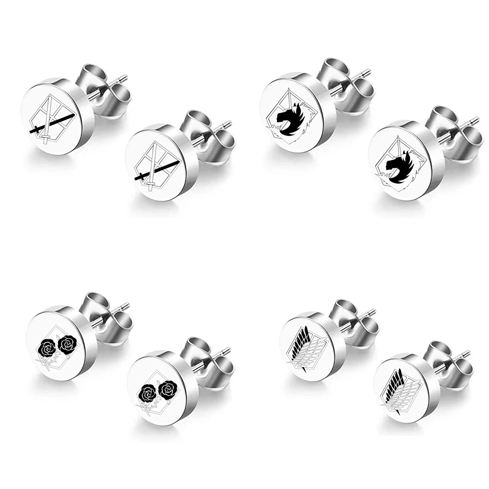 Show your allegiance to the Survey Corps with these detailed Attack on Titan wings earrings — featuring iconic sword and horse motifs, crafted in durable stainless steel for cosplay or everyday wear.