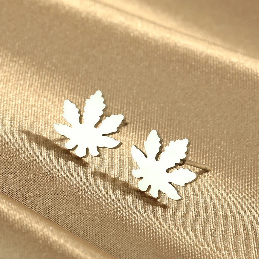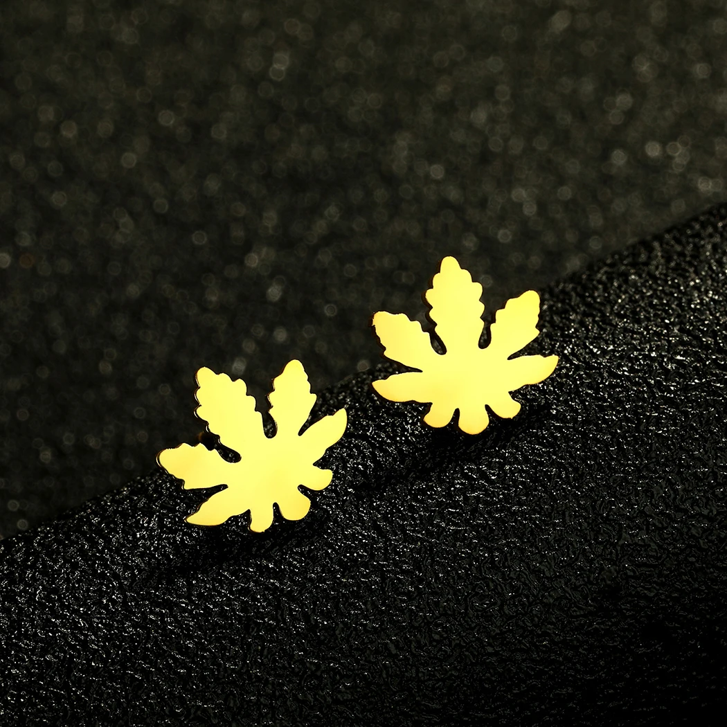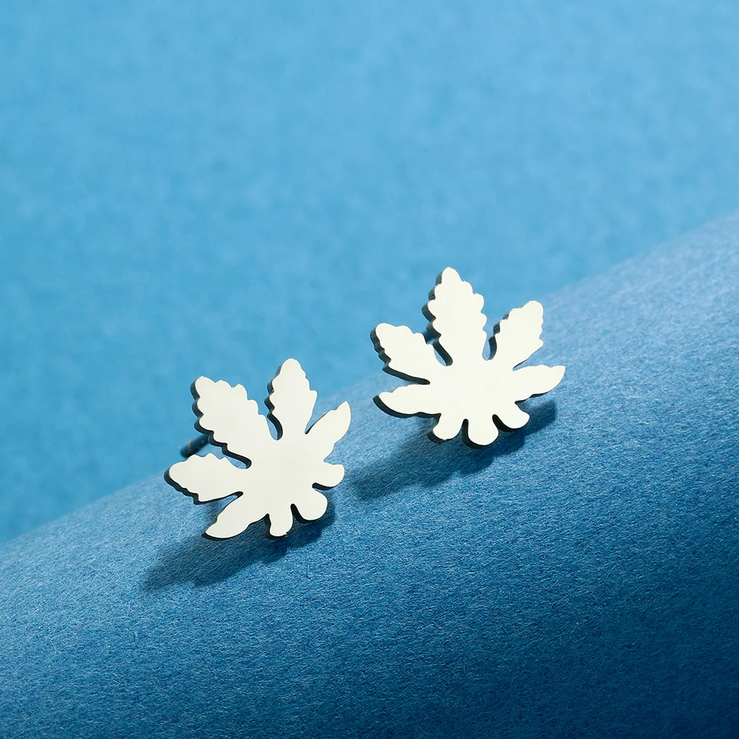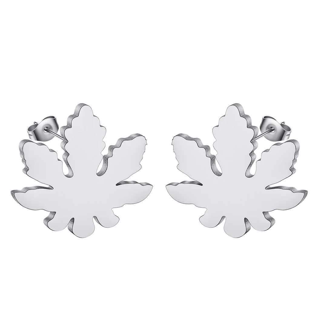 CHENGXUN Stainless Steel Mary Jane Weed Leaf Earrings