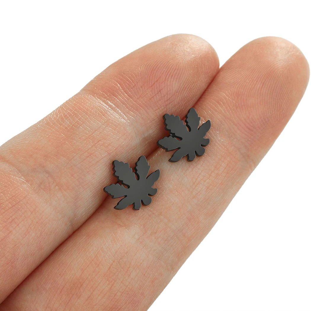 Add a bold, stylish touch to your look with these CHENGXUN stainless steel Mary Jane earrings — featuring a sleek weed leaf design in a minimalist size, perfect for both men and women who love edgy, modern accessories.