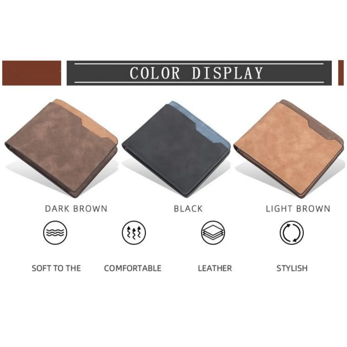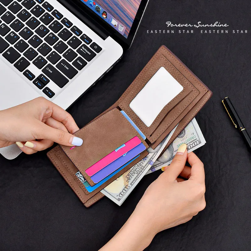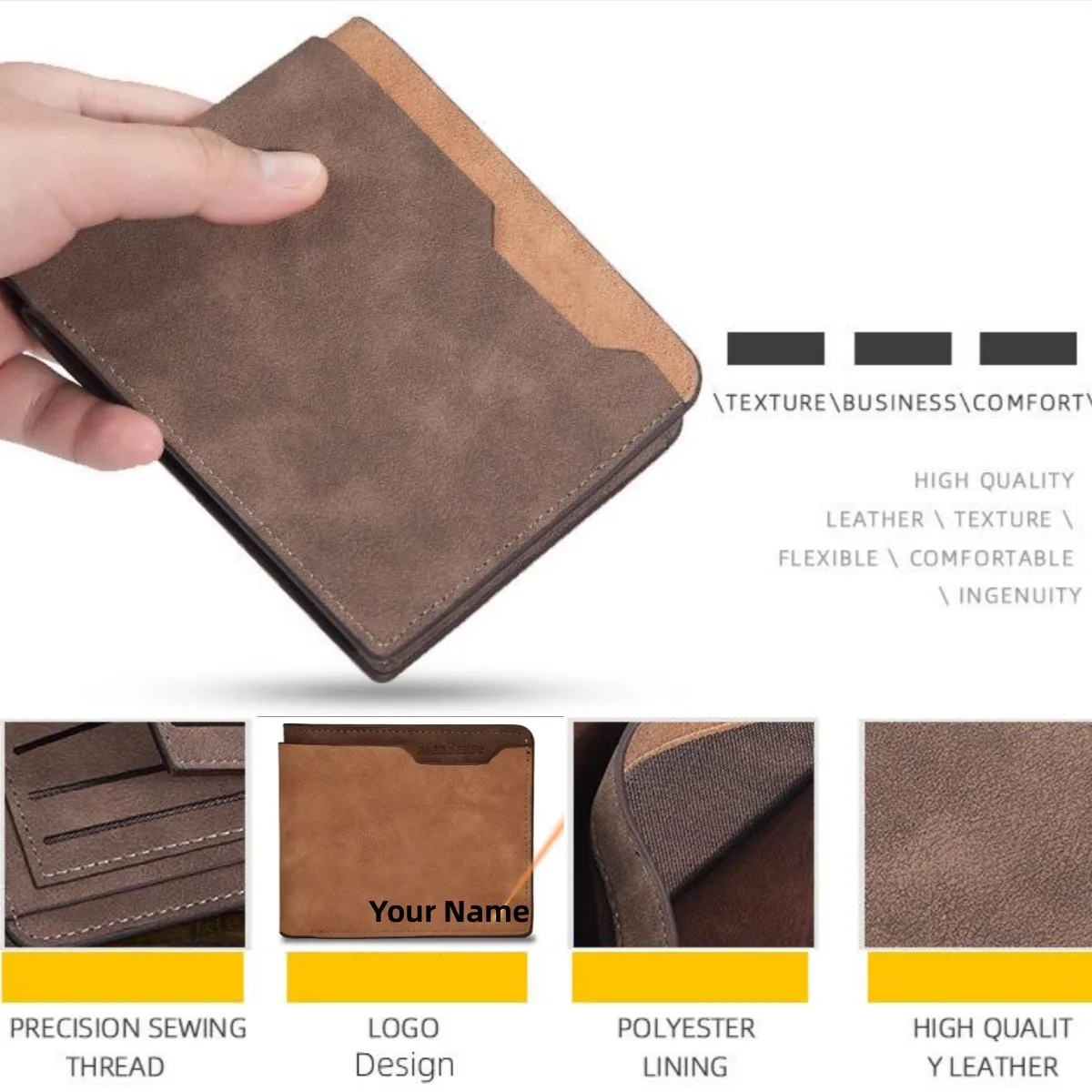 Customized Name Engraving Men’s Wallet – Slim Frosted Leather with Coin Pocket & Photo Holder