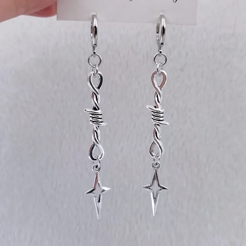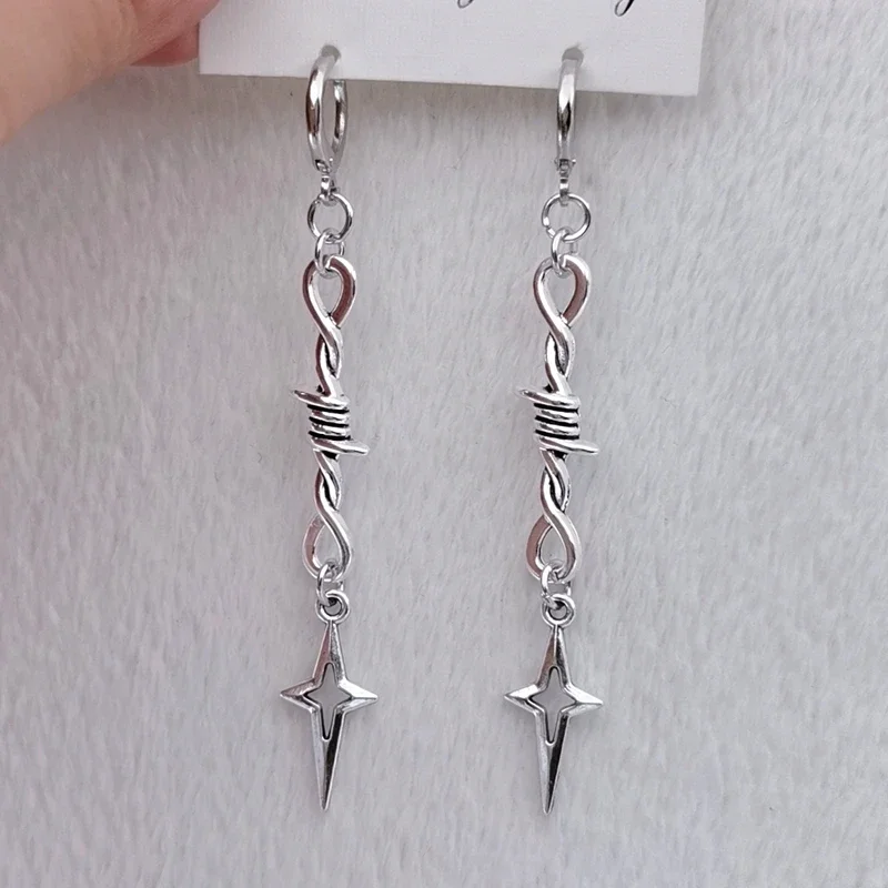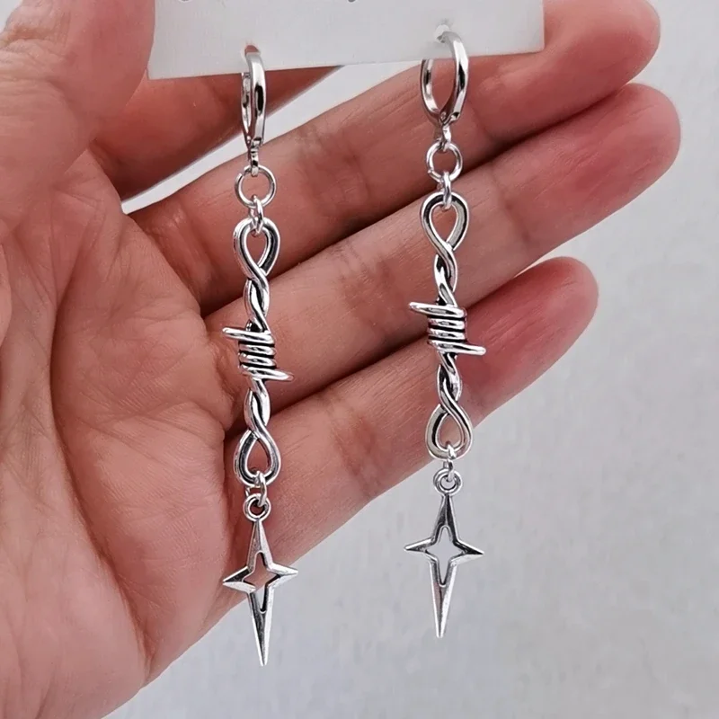 Fashion Punk Tiny Wire Thorns Iron Star Drop Earrings – Hoop Earrings with Star Charm Pendant for Girls