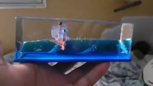 🌊 Ships float gently inside a liquid-filled bottle, creating a drifting-at-sea effect
