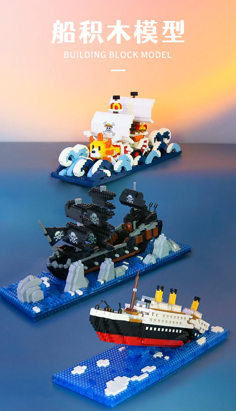 New Micro Bricks Mini Building Block Kits – DIY Diamond Construction Model Drift Bottle Toys RMS Titanic & One Piece Pirate Ship