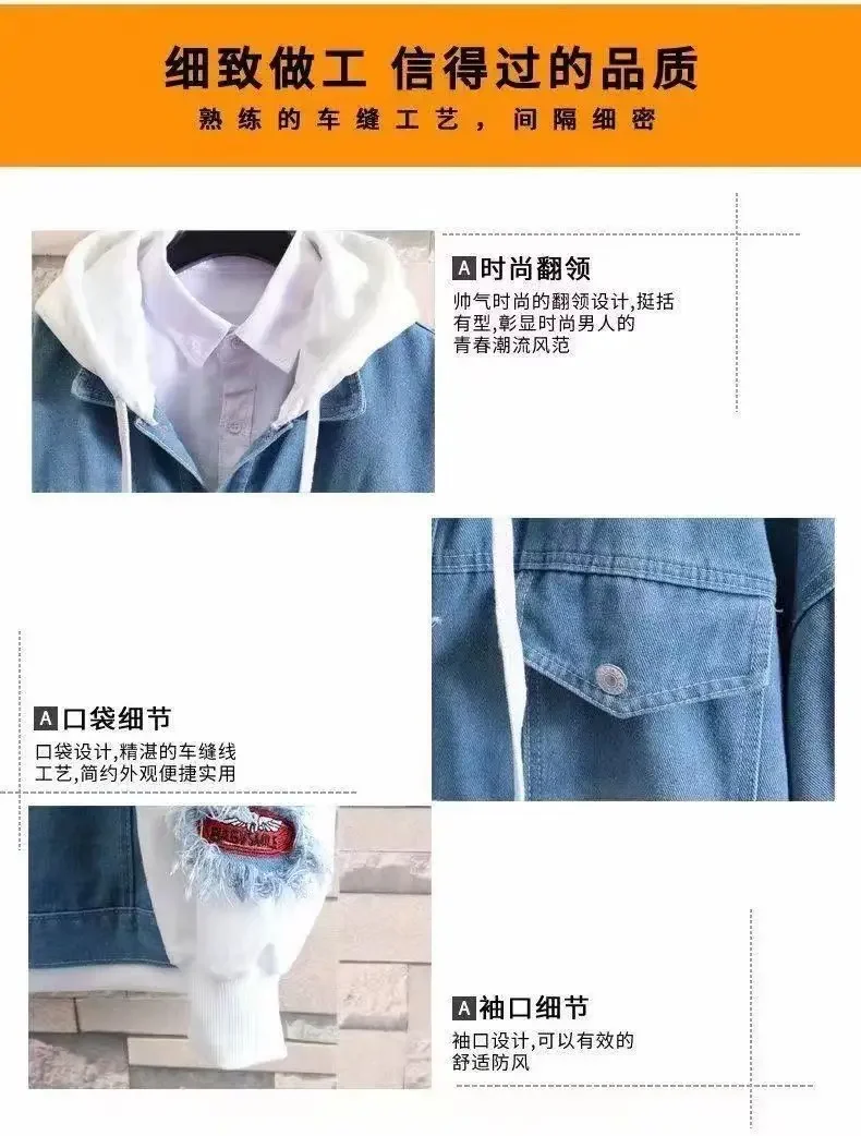 Unique ripped hoodie design with layered denim-style sleeves and hem