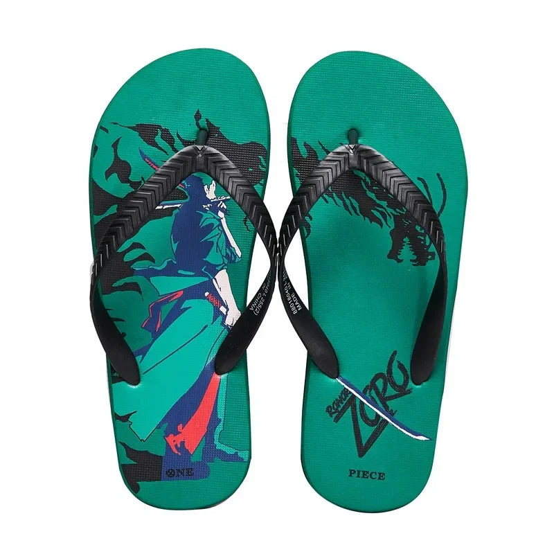 One Piece Anime Peripherals Kawaii Luffy, Chopper & Zoro Slippers – Men’s Outdoor Flip-Flops